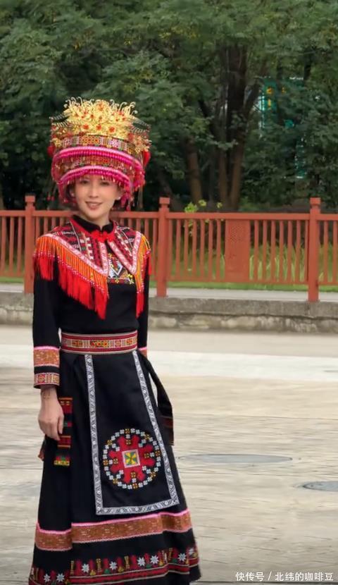 紧接着森女士身上的衣服发生了改变,她穿着瑶家的传统服饰,十分的美丽。 她用手扶着发饰弯下腰拿起了手机,或许是怕蹲下后,头上的发饰掉下来吧。 随后,镜头跟着她来到了室外,不得不说,她身上的衣服还挺有特色的。